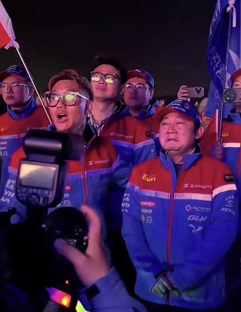 远在千里之外的重庆,面对着实时直播的大屏幕,张雪机车工业有限公司创始人兼董事长张雪把国旗高高举起,一边挥舞着一边哭喊。
